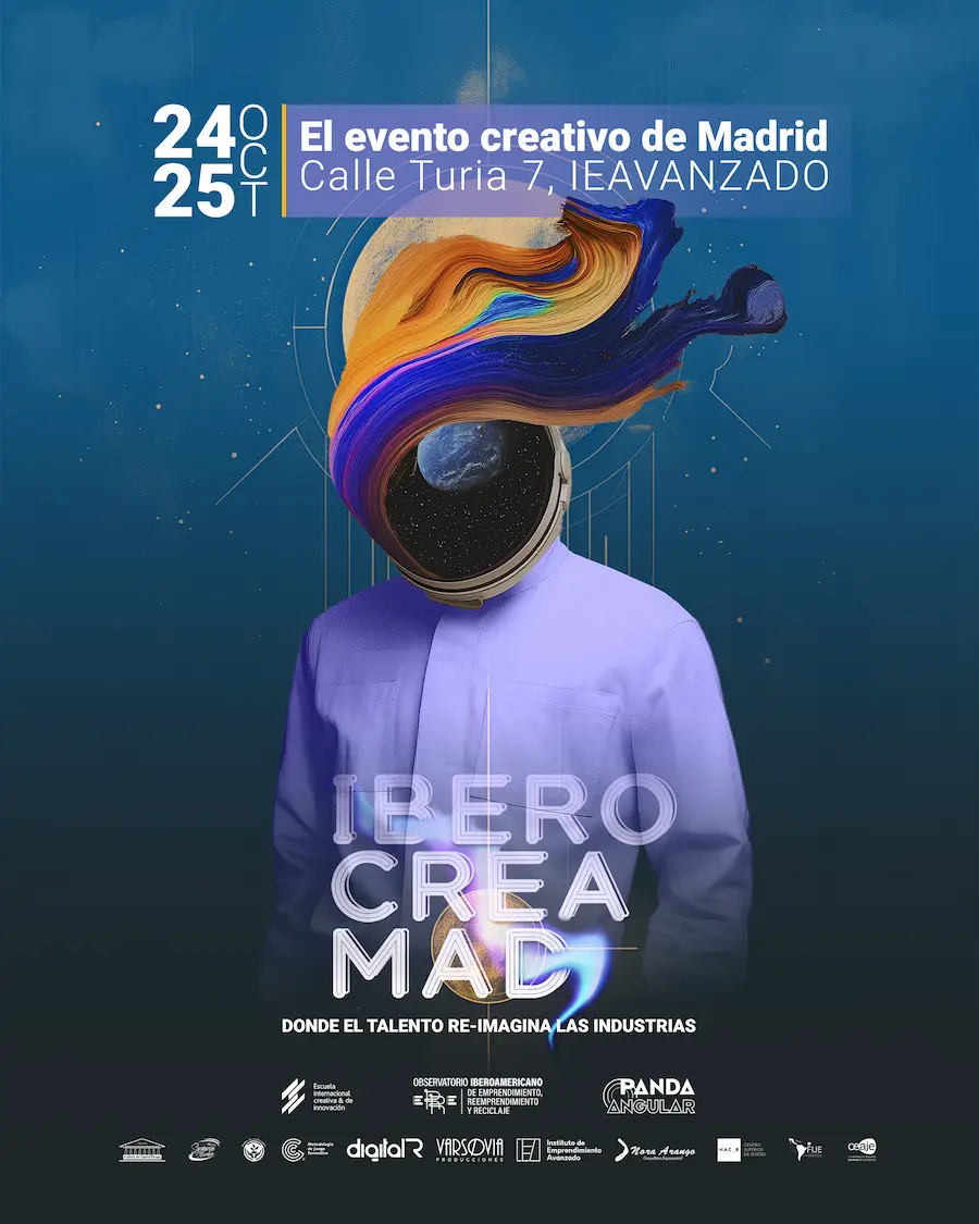 IBEROCREA MAD es un encuentro de inmersión creativa empresarial iberoamericano. Más que un evento, se erige como una plataforma esencial para los emprendedores y creativos que buscan no solo inspiración, sino también oportunidades concretas de crecimiento y colaboración, financiación y desarrollo de productos, organizado por la Fundación Observatorio Iberaomericano de Emprendimiento, Reemprendimiento y Reciclaje de España, la Escuela Internacional Creativa y de Innovación de Colombia y la productora audiovisual Panda Angular, con la colaboración de Digital R, Nora Arango, Fundación Sinfonía por Colombia, Instituto de Emprendimiento Avanzado de España, Matter Of Trust Ecuador, Varsovia Producciones, Instituto de Capital de Riesgo INCARI, Fije, Ceaje, Hacer Creativo Centro Superior de Diseño y CuatroC.